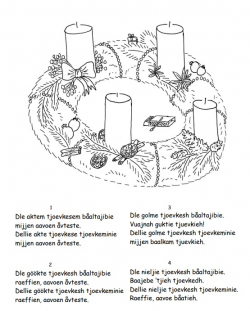 Krans med lys til fargelegging og dikt.